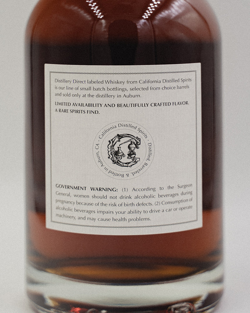Our single barrel whiskey, barley, corn, and wheat, fermented for depth of flavor, then distilled for rich smoothness. Aged in new American White Oak barrels.